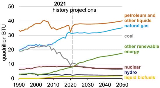 With the energy industry currently responsible for 73% of human-caused greenhouse emissions, the need for sustainable energy solutions has never been more urgent. As the primary energy source worldwide and the manufacturer of many primary commodities, the oil industry plays a crucial role in this transition ([]), and oil is the primary energy source worldwide, while it manufactures many primary commodities []. To avoid increasing the frequency and severity of extreme weather events, global CO2 emissions must be halved by 2030, and the energy system must be decarbonized by 2050. Although continuous efforts have been made to substantially increase the share of renewable energy in the global energy matrix, it seems unlikely that we will achieve the energy transition goals, particularly in countries that depend fiscally on the oil-producing sector. According to projections, petroleum and gas will remain the most consumed energy sources through 2050 but will grow more slowly than renewables (Figure 1).