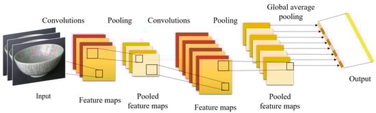 In the restoration work, besides focusing on materials, it is also necessary to actively adopt texture mapping measures, and realize this through texture mapping technology in the field of computer graphics [28]. Texture mapping technology maps the texture image in a plane state to the corresponding 3D model. The main process includes the following steps: (1) shoot the mapping image with a digital camera; (2) use digital tools of two-dimensional static processing to mosaic and repair images; (3) the generator generates the same image features as the actual image, so that the whole training process can be carried out stably. Figure 3 is a CNN model used for the feature extraction of ceramic images.
