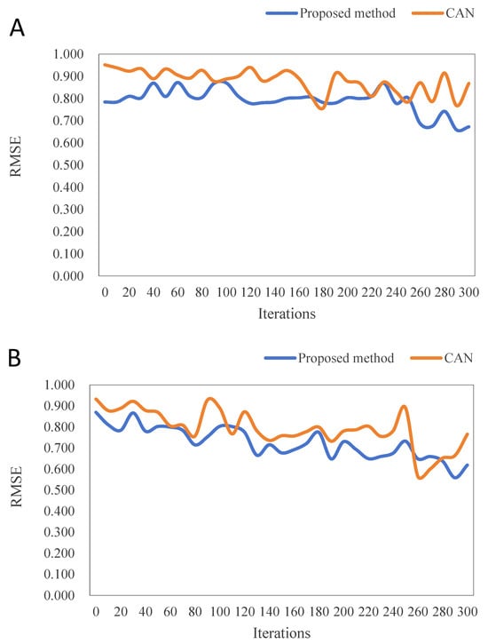 Figure 8 and Figure 9 show comparisons of the MSE and RMSE values of different algorithms applied to the training set and the test set, respectively. According to Figure 8 and Figure 9, we can infer that the algorithm proposed in this study yields lower error than the traditional algorithm.