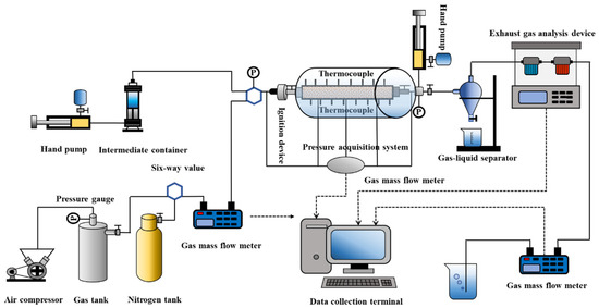 The experimental apparatus consisted of a one-dimensional (1D) combustion tube experimental setup, developed by Northeast Petroleum University. The combustion tube physical simulation system primarily included an air injection system, ignition system, model body, data acquisition system, and a liquid–gas separation and recovery system. A schematic of the 1D combustion tube experimental apparatus is shown in Figure 1.