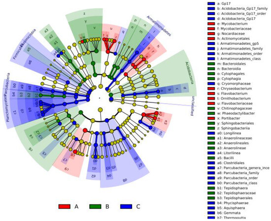 In order to further investigate the foaming bacteria, linear discriminant analysis effect size (LEfSe) was performed for the foam sludge group and the other two active sludge groups, so as to obtain the bacteria that play a key role in foam sludge. The Kruskal–Wallis (KW) sum-rank test with non-parametric coefficients was used to detect features of significant differences in abundance between groups.