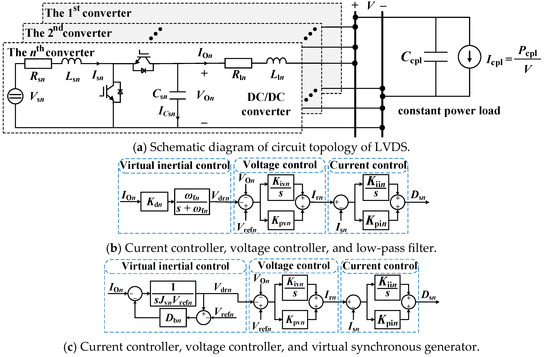 In order to evaluate the HF oscillation frequency of the LVDS, a reduced-order model (ROM) should be established. Then, a virtual-inertial-equivalent modeling method is proposed in this paper. It is assumed that the filter parameters and control parameters of each converter in the LVDS are designed through the same principles [34,35,36]. Under this assumption, this equivalent modeling method is applicable.