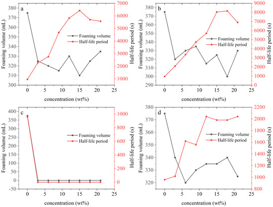 | System | Conditions | Foaming Volume/mL | Half-Life Period/s | Foam Composite Value/mL·s |