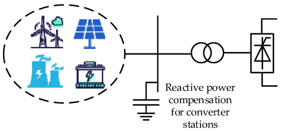 With the development of the global energy system showing a trend towards decarbonization, increasing the proportion of renewable energy generation has become an important part of reducing carbon emissions and energy transformation in the power system. By the end of 2023, the global installed capacity of renewable energy generation reached 3865 GW, and the growth rate is 14.6%. Wind power comprises 1017 GW, and solar power is at 1419 GW. In addition, the global coal-fired power generation is 10,513 TWh, accounting for 35.13%. In China, the installed capacity of coal-fired power generation accounts for 47.61%, and the proportion is gradually decreasing. The installed capacity of wind power and photovoltaic reached 441 GW and 609 GW by the end of 2023, respectively. Wind and solar power generation is gradually becoming the main force of power generation in China. Due to the inherent stochasticity and fluctuation in renewable energy generation, the large-scale development of renewable energy poses challenges to the security and stability of the power grid [1,2]. Cross-regional power transmission is crucial for the consumption of renewable energy. In recent years, many high-voltage direct current (HVDC) transmission systems have been constructed in China and have become the main means of renewable power cross-regional transmission. But when short-circuit faults such as DC blocking occur in the HVDC systems, a large amount of surplus reactive power will be sent back to the AC system and lead to transient overvoltage [3]. This may lead to the off-grid accident of renewable energy. To ensure the reliability of system operation and promote the consumption of renewable energy, the power system needs to utilize a variety of resources to improve the flexible adjustment ability and realize the stable operation of the system.