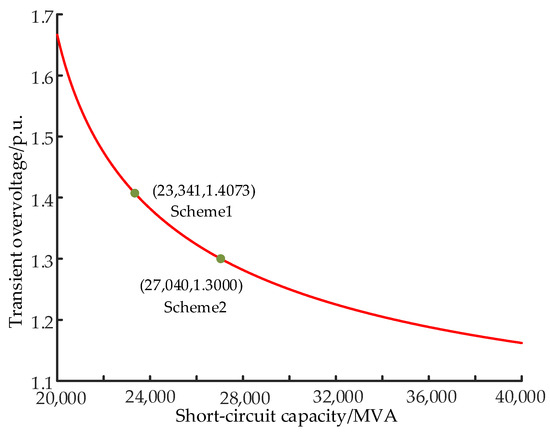 Then, combining Equation (19) with Equation (21), the transient overvoltage constraints based on short-circuit capacity can be shown as follows: