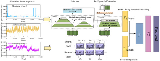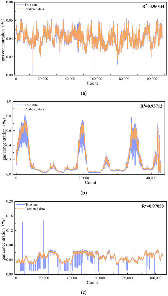 As the primary cause of coal mine accidents, gas explosions account for approximately 50% of major mining disasters in China [1,2,3]. Mine gas, a collection of combustible gasses released during coal mining, primarily consists of methane (CH4), which accounts for over 90% of its composition [4]. Accurate monitoring of gas concentrations enables the timely detection of potential hazards underground, allowing for prompt evacuation and ensuring the safety of personnel and equipment [5,6]. However, traditional monitoring techniques are limited to real-time measurements of current gas concentrations and struggle to effectively predict future trends [7]. In light of this, developing efficient gas concentration prediction models to enable early warning and preventive measures has become a crucial research direction in preventing coal mine gas explosion accidents [8,9].