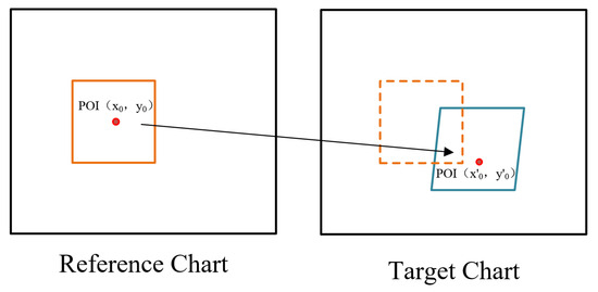 The fundamental principle of the DIC method is illustrated in Figure 1. A reference subregion was established in the reference image prior to the deformation of the object, with the search point serving as the center. The target subregion that most closely resembles the reference subregion was identified through a correlation function in the target image, with the coordinates of the center position of serving as the reference. In order to compute the requisite deformation variables, the gray values of the pixels in the target subregion were compared with those of the pixels in the reference subregion. The similarity between the reference and target subregions is typically described by the normalized least squares distance function (ZNSSD) [17], defined as follows: