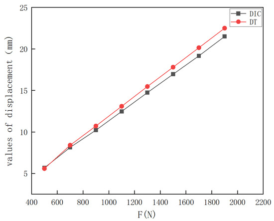 It can be seen from the diagram that there is a small deviation in the measurement results of the two methods; it may be that the displacement sensor usually measures the displacement of a specific position, while DIC calculates the displacement on the whole surface. Because there may be errors in the measurement points of the two methods, this may lead to differences between the local deformation and overall deformation, especially for large deformations.