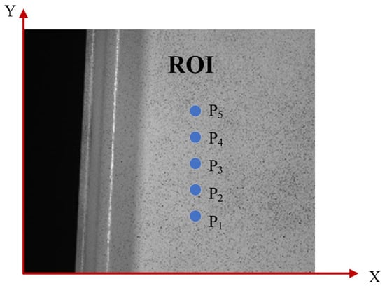 Five feature points were selected from the ROI area of the column, which were recorded as P1~P5, as shown in Figure 12. The abscissa of the five points were the same, and the ordinate interval was 10 mm.