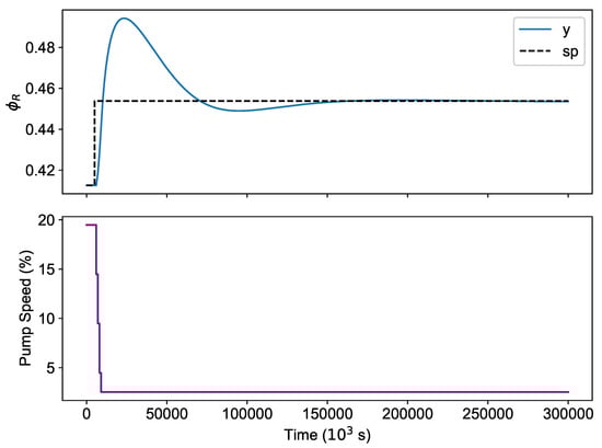 where P is the prediction horizon, M is the control horizon, is the predicted output by the transformer model, is the setpoint, is the control move, and is a tuning parameter that penalizes aggressive control actions. Figure 6 shows the result of the MPC.