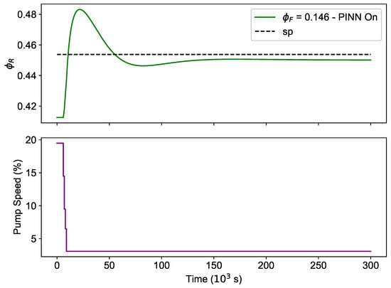 Note that there are cases in which the error is high even for the transfer learning approach, such as for some values of . This highlights the nonlinearity of the process and instances where the control fails to converge to the setpoint despite transfer learning. This suggests a need for additional tuning of the MPC parameters or indicates a limitation of the mathematical model used to represent the thickener. Figure 9 shows the resulting performance of the MPC after further tuning of the prediction and control horizon lengths.