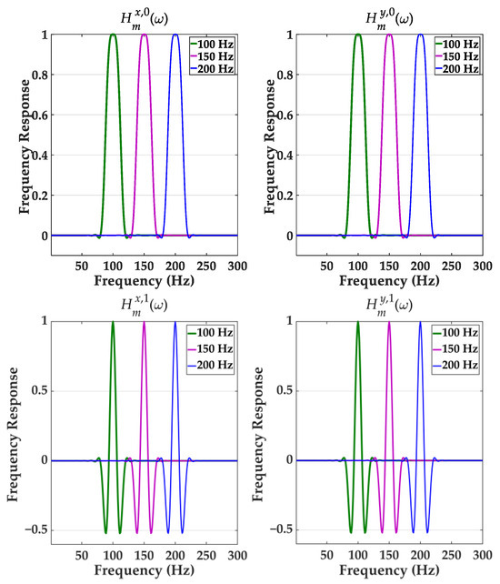 In essence, Equation (13) can be viewed as a filtering process, where represents the filter bank for the derivatives of the composite modulation components. The measurement accuracy depends on the frequency response characteristics of this filter bank. The estimation values and are determined by both the theoretical values , and the frequency response of the filters.