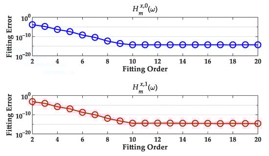 The fitting error of the passband frequency response is shown in Figure 5. When the fitting order exceeds nine, the fitting error drops below 10 × 10−14. And as the fitting order continues to increase, the fitting error does not decrease rapidly anymore. Therefore, this paper selects a fitting order of 10, i.e., Q = 10.