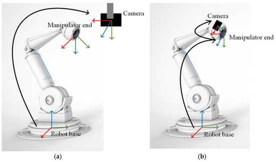 (a) Eye-to-hand configuration; (b) Eye-in-hand configuration.