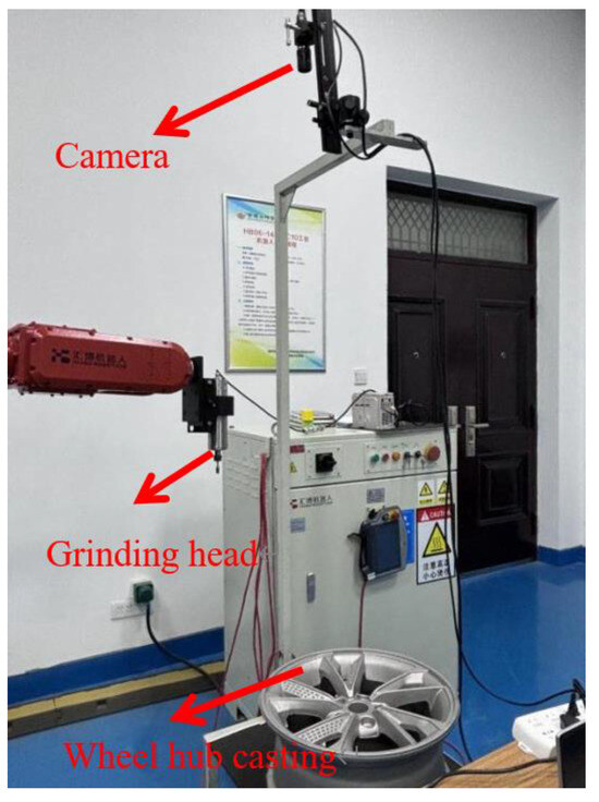 The system developed in this paper significantly increases the flexibility of grinding operations compared to non-visually guided mechanical arm grinding and manual grinding methods. However, the development of fully integrated flexible grinding systems remains an ongoing challenge, particularly in actual factory applications where integrated solutions are needed to realize the rapid grinding of large volumes of burrs on the wheel hub casting. However, further development remains an ongoing challenge for fully integrated flexible grinding systems, especially in actual factory settings where integrated solutions are necessary to achieve rapid grinding of large volumes of burrs on wheel hub castings. Furthermore, if the robot can select appropriate poses for grinding burrs in complex positions still needs to be verified. At present, the system only completes the grinding of the burr points. Subsequent quality assessment and manual finishing still require human intervention. Therefore, the rational detection of the quality of grinding burrs in wheel hub castings will also be a future research focus.