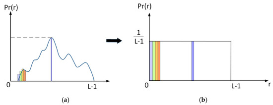 (a) Raw image brightness information; (b) Histogram equalization results.
