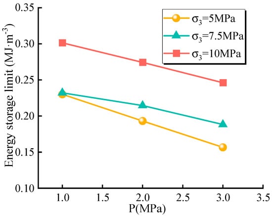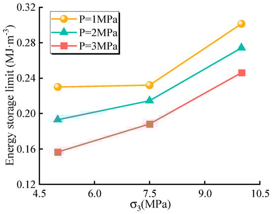 Relationship between energy storage limit and confining pressure under different pressure conditions.