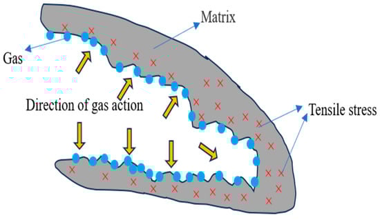 Gas wedge effect at the crack tip.