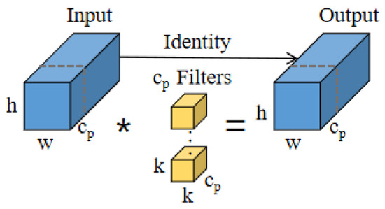 where h and w represent the height and width of the feature map, respectively, while k denotes the size of the convolution kernel, corresponding to the number of channels processed by the regular convolution.