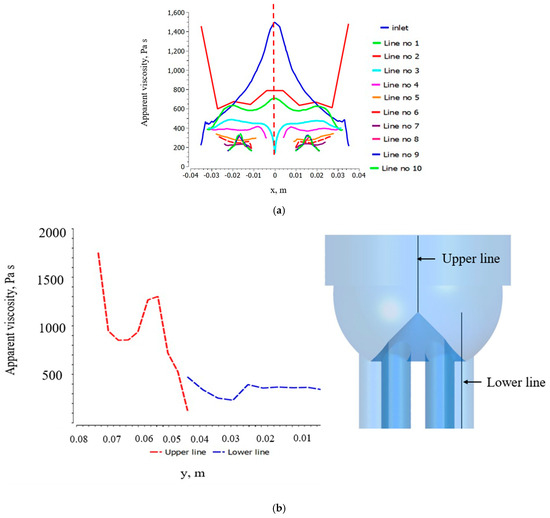 Apparent viscosity variation (a) along horizontal lines and (b) along vertical lines.