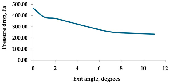 Computational results in Figure 13 and Figure 14 show that with the increase of exit angle, the pressure drop decreases significantly till the exit angle reaches 7 degrees. Though pressure drop continues to decrease at a slower rate for exit angles beyond 7 degrees, dies with higher exit angles would be difficult to manufacture. Figure 12e,f shows that exit angles of 9 and 11 degrees change the die shape, which can compromise the extrusion process.