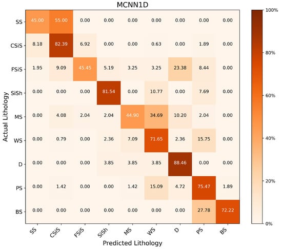 Confusion matrix for lithology identification using MCNN1D.