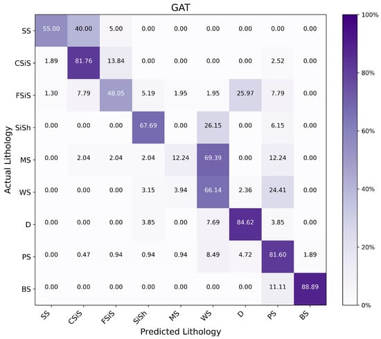 Confusion matrix for lithology identification using GAT.