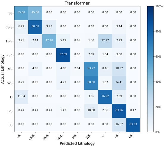Confusion matrix for lithology identification using Transformer encoder.