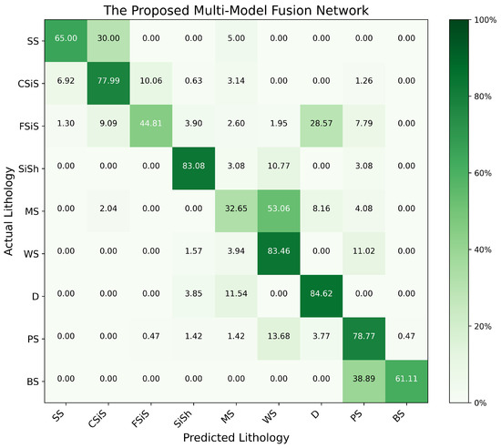 Confusion matrix for lithology identification using the proposed model.