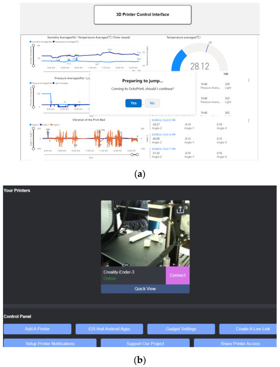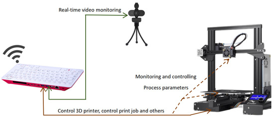- Kakade, S.; Mulay, A.; Patil, S. IoT-based real-time online monitoring system for open ware FDM printers. Mater. Today Proc. 2022, 67, 363–367. [Google Scholar] [CrossRef]