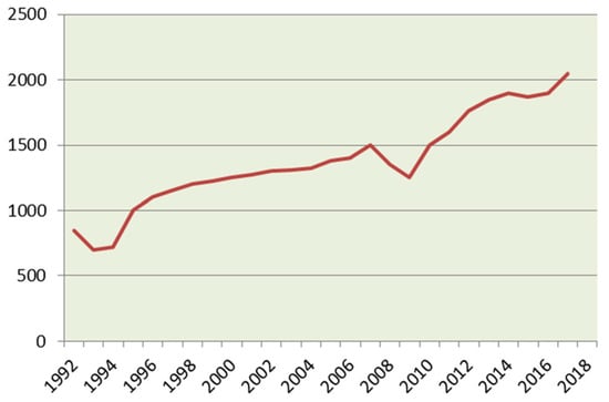 Nickel is a highly valuable metal in engineering due to its utilization in conjunction with other metallic alloys, such as steel (iron–carbon). Pure nickel possesses intriguing properties, including corrosion resistance in various environments, mechanical strength even at low exposure temperatures, as well as electrical, thermal conductivity, and magnetic properties [1]. Regarding its physical properties, nickel has a melting point of 1453 °C and a boiling point of 2910 °C, and its crystal structure is face-centered cubic (FCC). This structure promotes the ductility and malleability of the material due to its slip systems [2]. According to Didenko [3], the nickel production trend presents a stable growth trend, as presented in Figure 1, suggesting that the nickel demand is expected to increase even more in the future years. A notable highlight is the significant increase in production starting from the year 2010, which was attributed to robust economic growth in the Asian region, particularly in China. By 2020, the Asian continent accounted for approximately 82% of the entire global demand [4].