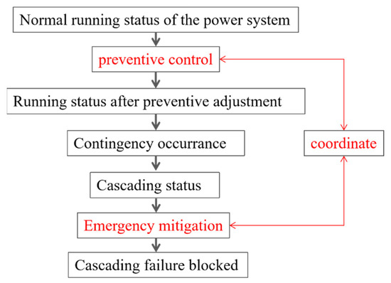 When optimizing the operating state of a generator and adjusting the distribution of power flow for prevention (preventive control), part of the mitigation pressure should be transferred and should be taken into account after cascading failures are triggered. The core idea of coordinated control is to cooperate preventive control with emergency mitigation while optimizing in advance. The core idea of coordinated control is to coordinate prevention control with emergency mitigation to reduce the consequences of cascading failure. The coordinate mitigation strategy block diagram is as follows Figure 1:
