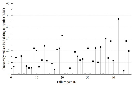 In Figure 5, the load reduction during emergency mitigation is shown. Through comparison and analysis with Figure 1, compared with the load loss caused by development without any control strategy of cascading failure, the load loss caused by the active load shedding in the implementation of the control strategy is lower, which proves that the control strategy can successfully block the chain fault and proves the effectiveness of the model.