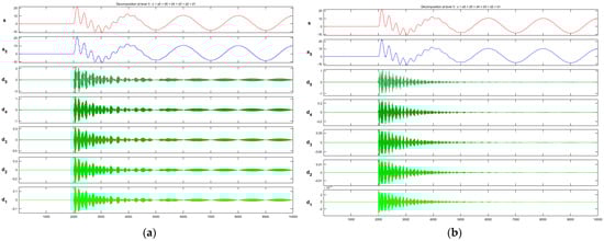 Comparison of results of different wavelet basis functions for the same signal. (a) Decomposition results using haar wavelet basis functions; (b) decomposition results using sym wavelet basis functions.