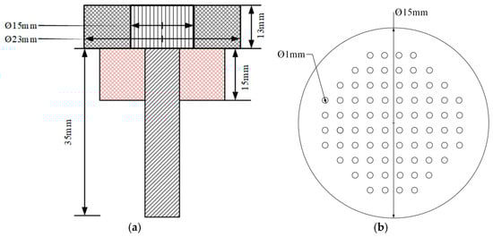 Each porous plug has a diameter of 15 mm, and consists of 76 holes with a diameter of 1 mm, as shown in Figure 3.