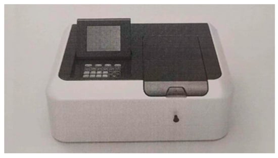 The concentration of thymol was measured using an UV-spectrophotometer (Nanbei, China) with a wavelength range from 190 to 1100 nm (the working wavelength for the experiments was 287 nm) (Figure 4). Its wavelength resolution is 0.1 nm and it has a precision in concentration of 0.01 ppm. Standards of known concentrations were prepared to calibrate the equipment, plotting absorbance versus concentration. The absorbance ranged from about 0.05 to 0.25 for a concentration of thymol from 20 to 200 ppm, yielding a linear relationship. Preheated water was used to prepare the standards and assist the dissolution of thymol.