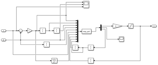 In the simulation model, the output is the threshing concave clearance displacement signal. The purpose of adding a limit is to protect the actuator’s movement within a safe range, restricting the minimum and maximum stroke of the actuator. The loss grain value is set at 35 (entrainment loss rate of 1.2%) and controlled by the system to reach 18 (entrainment loss rate of 0.7%).