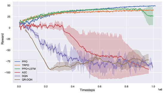- Schulman, J.; Wolski, F.; Dhariwal, P.; Radford, A.; Klimov, O. Proximal policy optimization algorithms. arXiv 2017, arXiv:1707.06347. [Google Scholar]
