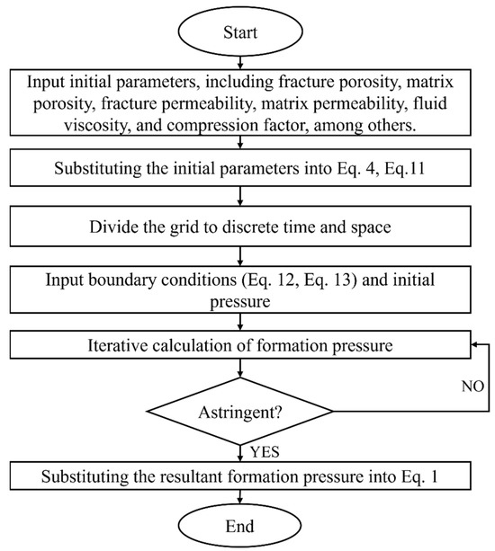 The variation in the mean reservoir pressure (p) during production is simulated using matrix-fracture permeability modeling of deep shale employing the following physical model (Figure 1).
