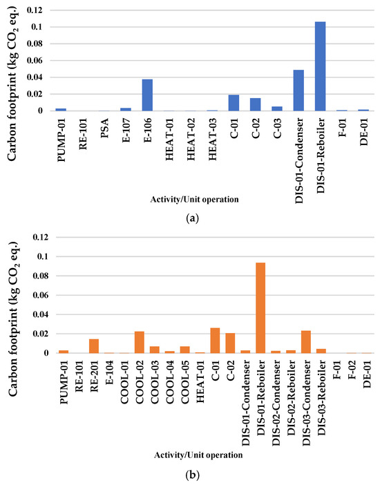 Carbon footprint of operating units and raw materials of three BHD processes.