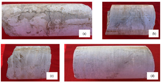 Actual core on-site. Core samples depicted in (a–d) are from different locations.