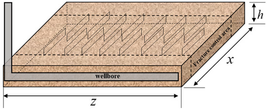 (1) Coupling of the far-well area, fracture area, and near-well area was performed using the material balance method. The cumulative production of each zone was equal to the difference between the initial geological reserves and the remaining geological reserves (Equation (18)) [21]: