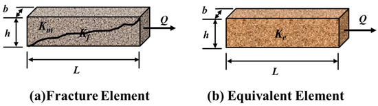 As shown in Figure 3b, the homogeneous equivalent model has the same parameters as the fracture unit except for permeability, and this physical unit is called the equivalent fracture element in this paper.