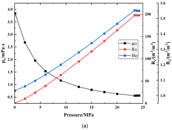 The fluid property parameters of this model were calculated by interpolating actual parameters of a fractured reservoir, as illustrated in Figure 12.
