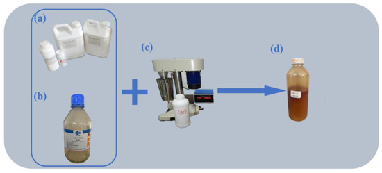 Manufacturing of acid liquid used for acid fracturing tests: (a) additive; (b) 36–38% concentration hydrochloric acid; (c) stirring device; (d) configuration of complete acid liquid.