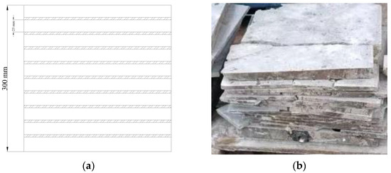 Firstly, the cling film should be removed from the surface of the specimen, the specimen should be cleaned, and a high-speed cutting machine should be used to cut the specimen layer by layer in the direction of intersection with the fracture surface at a large angle and with a thickness of 25 mm for each layer. A camera should then be used to take a front view of the cut surface for each layer. The resulting image is shown in Figure 5.