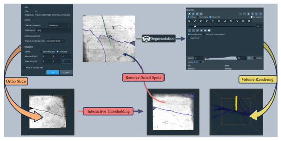 Workflow on reconfiguration of three-dimensional fractures through Avizo software.