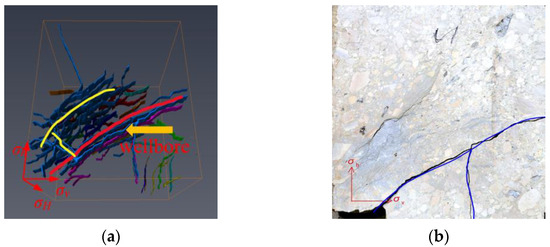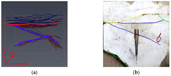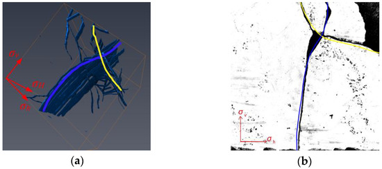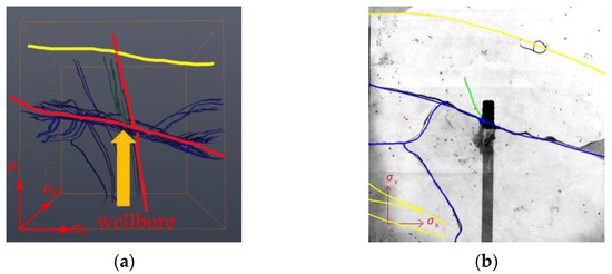 Comparison of fractures under different horizontal stress difference: (a) 3 MPa; (b) 15 MPa.