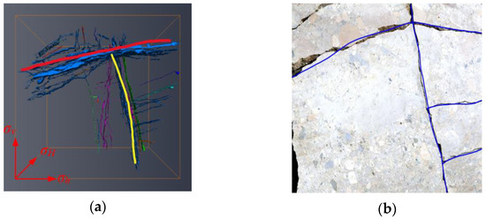 (a) Spatial distribution of three-dimensional fractures in Z-8 specimen; (b) cut slice.