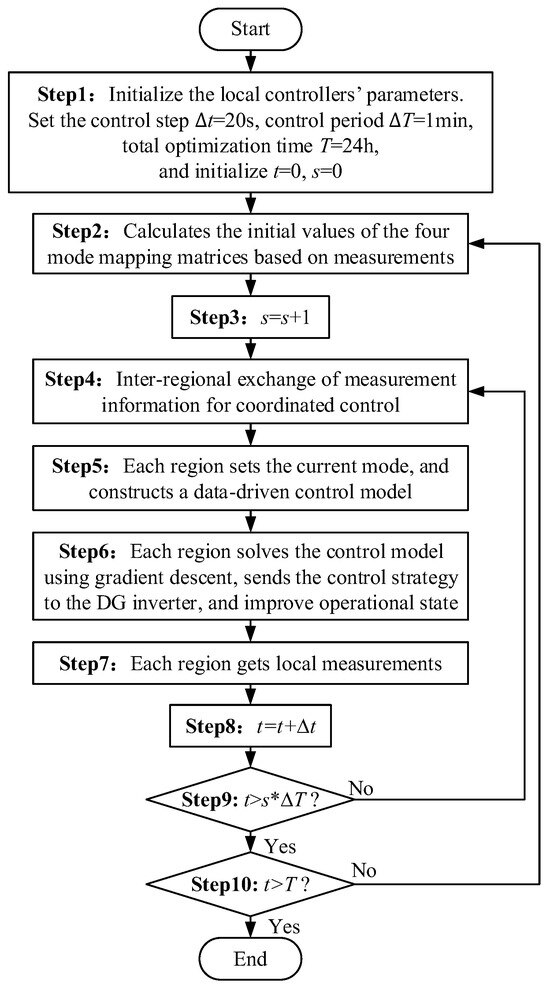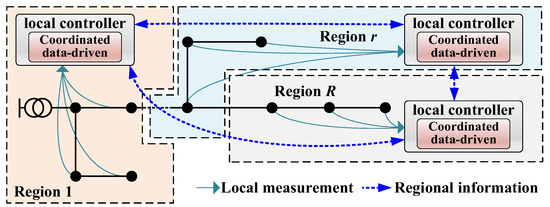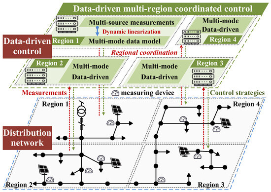 The framework of the proposed control method for distribution networks is shown in Figure 1. It primarily consists of intra-region measurement acquisition, inter-region coordination, data-driven multi-mode modeling, and control strategy optimization, as detailed below.